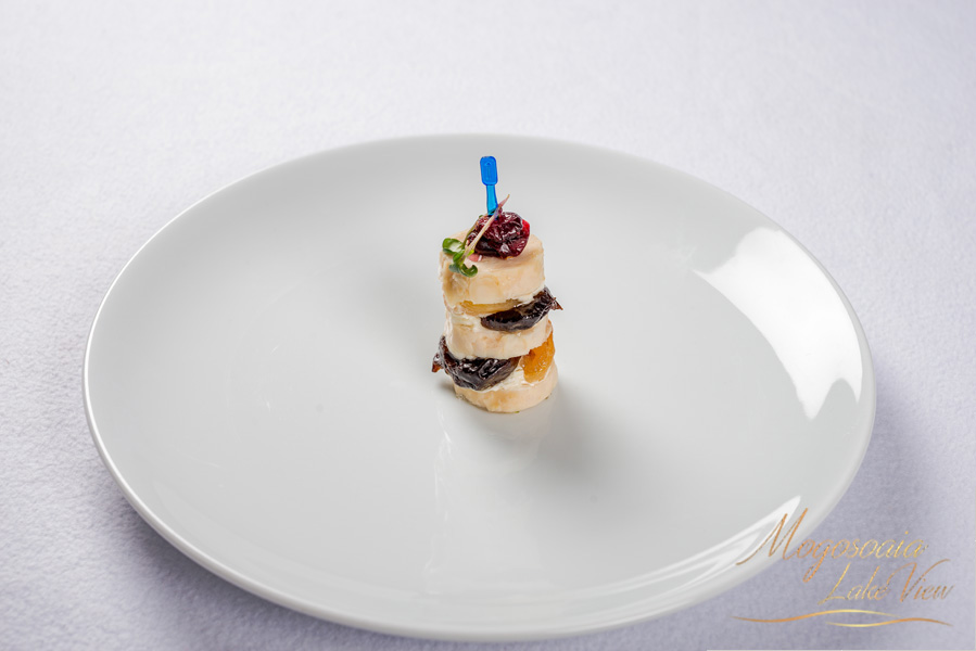 Rulada de pui cu fructe confiate si fulgi de migdale